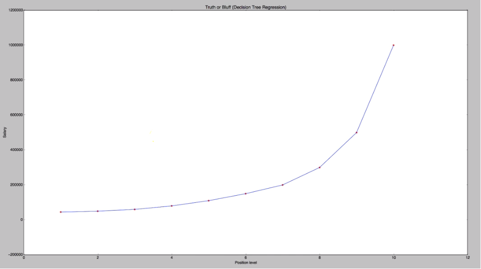 y_pred = regressor.predict(6.5)# Visualising the Decision Tree Regression results