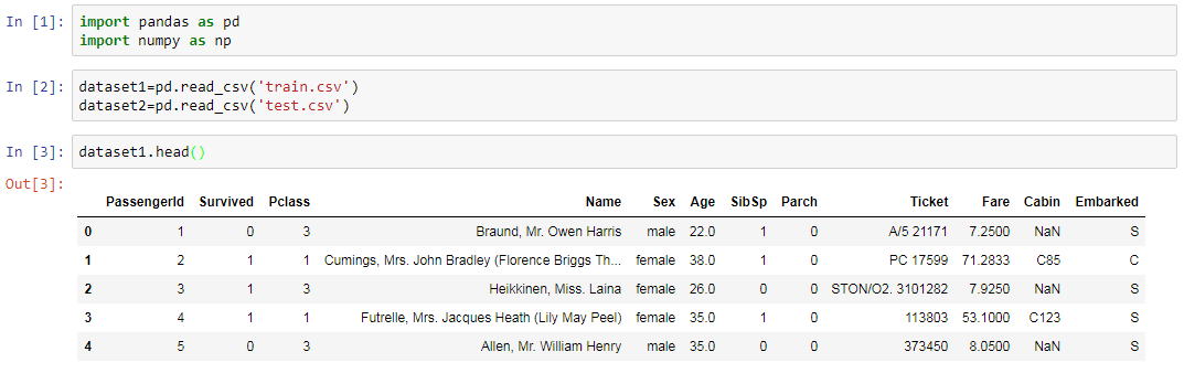 To get train.csv in a Dataframe, we will need pandas library imported in our program because pandas has a function read_csv which will return a dataframe variable.